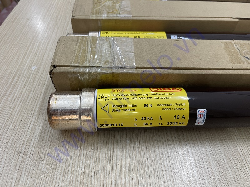 Cầu chì ống trung thế SIBA 36kV 16A - Cầu chì SIBA được nhập khẩu trực tiếp từ hãng SIBA, xuất xứ Đức, cấp đầy đủ CO, CQ nhập khẩu.